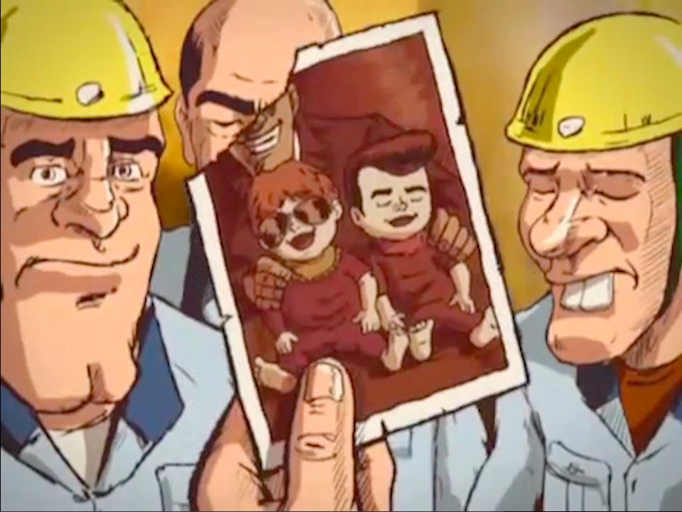 低予算で実現するために、絵は天才藤井が描いてくれて、僕がCMソングの歌詞を書いて自分で歌って、番長の声までやってます。