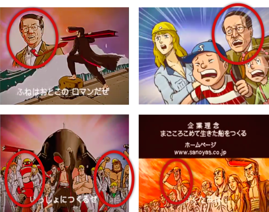 実は、主要キャラクターが当時のサノヤスのリクルートを担当しておられる方々の顔だったりします。つまり、会社説明会に行くとアニメCMで見た顔とそっくりの方々が出てきて話をし始めるわけです。