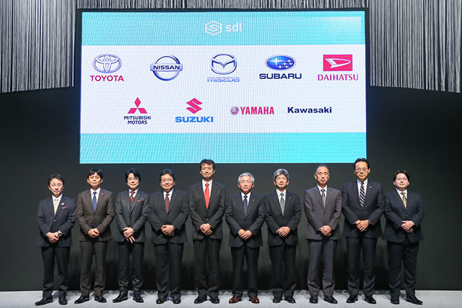 冒頭、バイス・チェアマンの村田賢一氏はSDLの概要やシステムについて解説を行い、「充実したサービスを提供するため、日本市場向けのSDL機構を搭載した車両や車載器の開発、対応アプリケーションの配布を2018年より開始する」と発表した。