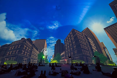 300人が入場できる巨大なドーム内に映像を映し出すインタラクティブ展示。