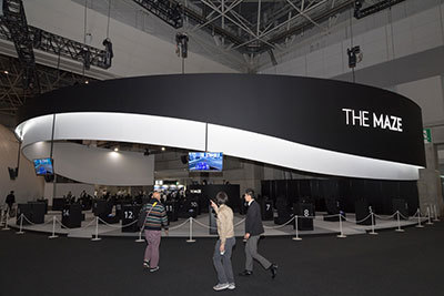 モビリティーとドライバー、そして都市とつながることで、どんな価値が生まれるのか。参加者がコネクテッドカーに乗り込み、未来と東京を迷路に見立て、ゲーム感覚で解き明かしていくネットワーク型VR体験コンテンツ。VRシステム「Play Station VR」を30台接続。参加者が同じフィールドを同時に走行し、迷路を突破するための情報を共有しながらゴールを目指す。街中で起こるコネクテッド体験を通して、将来のクルマの可能性を体感できる。