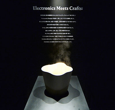 会場では、三つの取り組みが紹介されている。「Electronics Meets Crafts」は、京都の伝統工芸後継者によるクリエーティブユニット「GO ON」とパナソニックデザインがコラボレーションし、2017年のミラノサローネでも発表された未来の家電が展示されている。先進のエレクトロニクスと、数百年にわたって日本の暮らしを支えてきた伝統工芸が出合い、次の100年に向かって新しい豊かさを生み出す家電デザインだ。