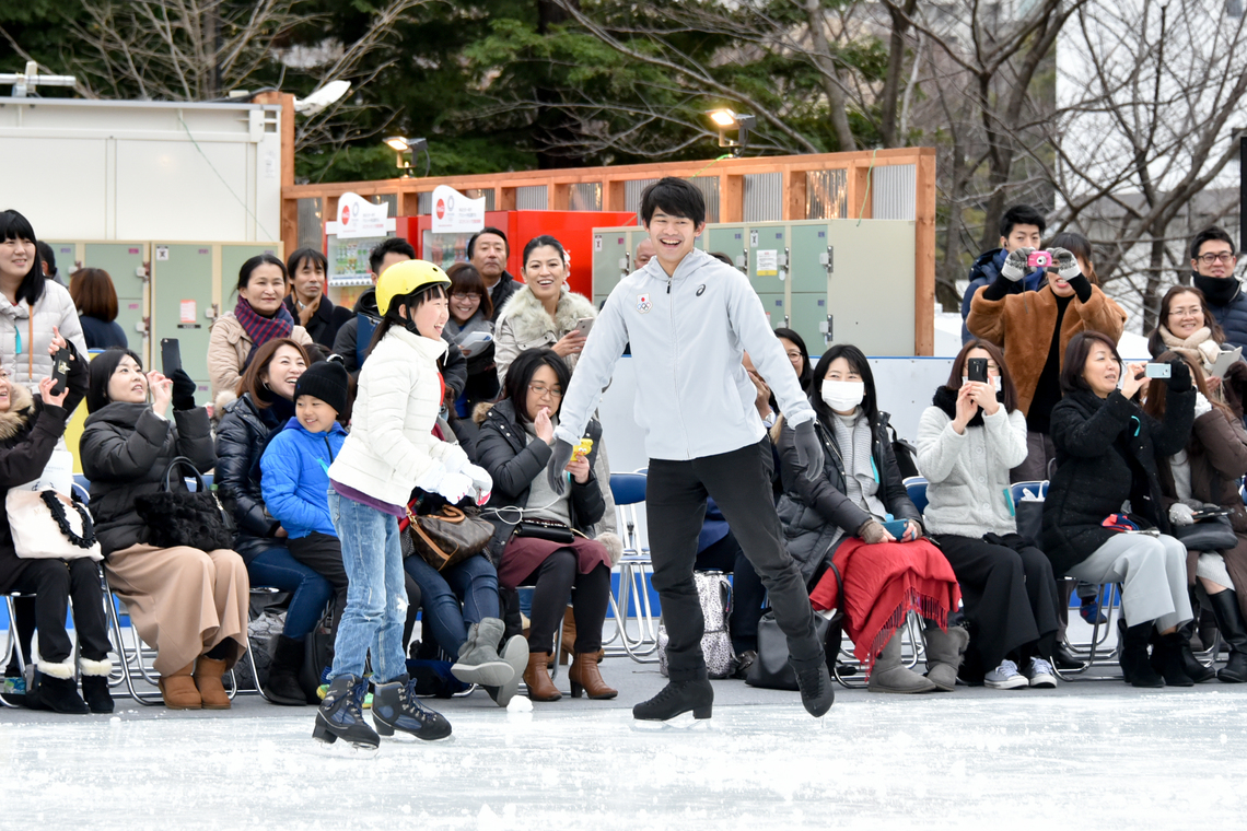 当日は、応援団長の松岡修造さんのトークショーや、JOCオリンピック・ムーブメントアンバサダーでプロフィギュアスケーターの小塚崇彦さんによるスケート教室が行われた。