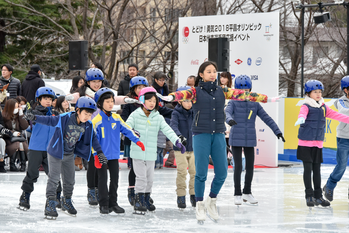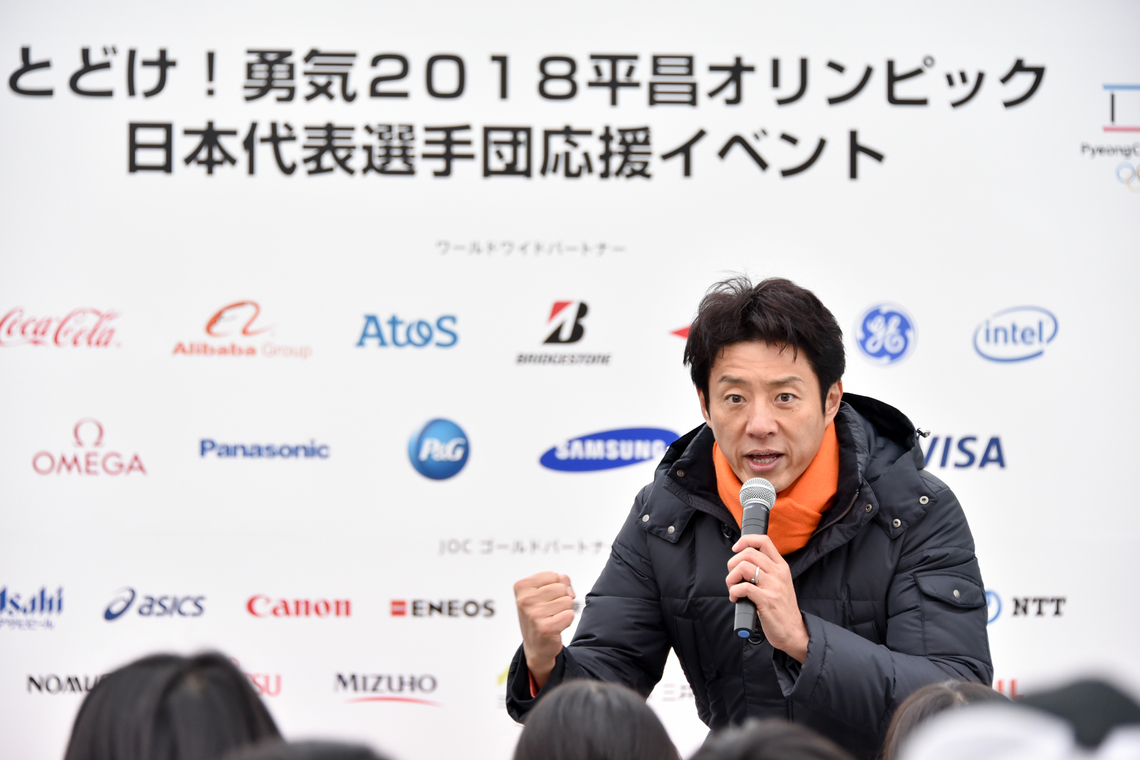 冒頭、JOCの竹田恆和会長は「2月の平昌大会に向けて、日本選手団も最終の準備中だ。2020年東京大会直前の平昌で、ソチを上回る成績を残しその勢いを東京につなげたい。今日は、スケートの楽しさや素晴らしさを体験してもらいながら、選手への応援メッセージを発信してください」とあいさつした。