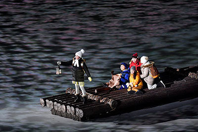 五輪をイメージした五角形の会場では、5人の子どもたちが、過去から未来を旅するというストーリーに沿って、伝統舞踊やヒップホップダンス、歌唱、花火や炎のショーなどさまざまなテクノロジーを使ったライブ感のあるパフォーマンスを繰り広げた。