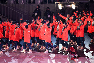 特例参加の北朝鮮は、韓国の選手団と共に「コリア」として入場。両国は南北合同チームを組み、女子アイスホッケーを戦う。ドーピング問題で参加が認められなかったロシアからは、OAR(Olympic Athlete from Russia)として約170人の選手が個人資格で出場する。