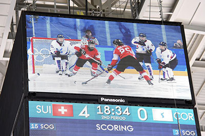 1988年からオリンピックスポンサーを務めるパナソニックは、今大会でも映像演出やシステムオペレーションなどのソリューションを含めた映像音響機器を、開閉会式や競技場、国際放送センターなどに納入している。また、東京大会での本格的な運用を目指して「マルチ動画配信システム」を関係者向けに試験運用する。フィギュアスケート会場内に限った動画配信で、サブスクリーンとしてスマホ、タブレットでマルチアングル映像が見られる。