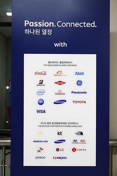 アルペン競技が行われる平昌のオリンピックプラザと、室内競技場が集まる江陵のオリンピックパークでは、複数のパートナー企業がPR施設を出展するとともに、空港や街中、会場周辺などに屋外広告を掲出。また、大会運営に関わる技術・サービスの提供や物品納入、参加アスリートの支援など多岐にわたる活動をしている。