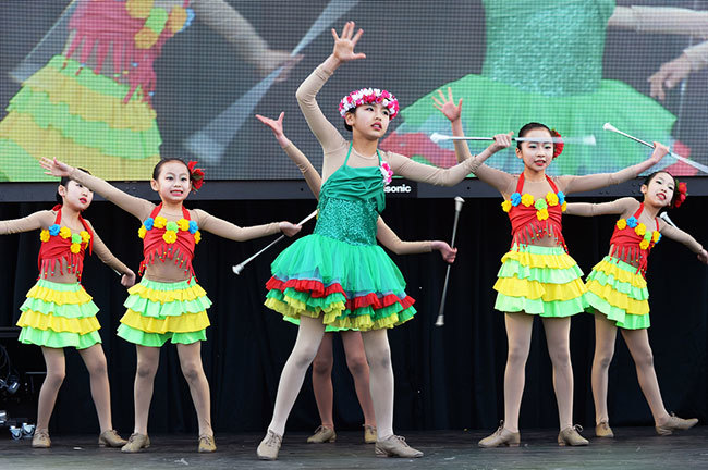 24日、ステージでは江東区有明小の児童たちによるバンド演奏や、バトン演舞、大学生によるダンスやフラメンコが披露され来場者を楽しませた。