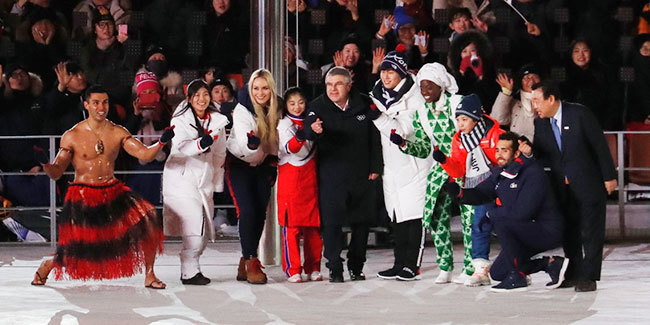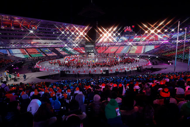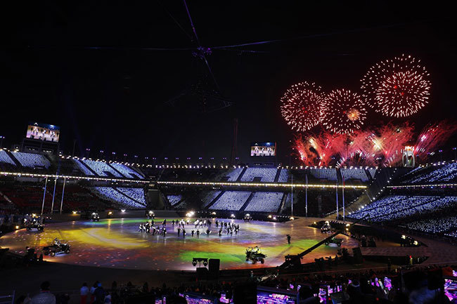 平昌オリンピックスタジアムでは、午後8時から開会式が行われた。テーマは「Next Wave」で“共存し互いの違いを認め合おう”というメッセージが込められた。