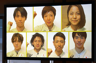 ステージでは、応援団やチアリーダーによる激励パフォーマンスが行われた他、平昌オリンピックで活躍した日本選手からの応援メッセージや、選手に縁のある友人・知人たちからの応援映像が上映され、終始和やかな雰囲気の中、選手たちもリラックスした様子で会を楽しんでいた。