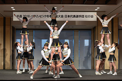 大日方団長は「全員が力を出し切れば、目標は必ずかなうと思う。冬季スポーツを盛り上げ、2020年東京大会につながる重要な大会だ。クリーンでフェアな戦いをしてきます」と述べ、須藤主将は「周囲の期待の高まりを感じている。多くの人がパラリンピック競技に興味を持ってくれるように力を尽くしたい」と決意表明した。