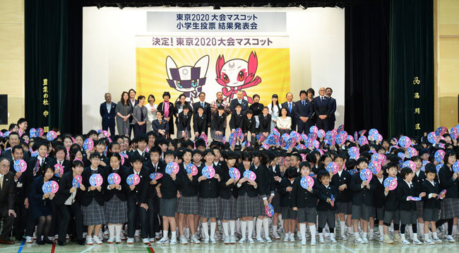 東京2020組織委は2月28日、2020年東京大会公式マスコットについて、投票結果の発表会を東京・品川区の区立豊葉の杜学園で開催した。