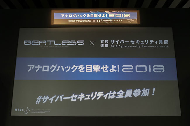 内閣官房内閣サイバーセキュリティセンター(NISC)は3月4日、KADOKAWA、BEATLESS 製作委員会と協力し、「サイバーセキュリティ月間」の普及啓発イベント「アナログハックを目撃せよ!2018」を東京・千代田区のアキバ・スクエアで開催した。