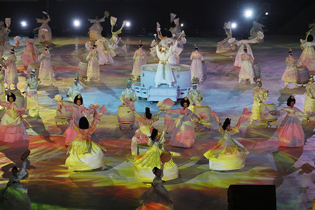 開会式は9日の午後8時から、平昌オリンピックスタジアムで開催された。テーマは「Passion Moves Us」(情熱が私たちを動かす)。式では、子どもたちによるパフォーマンスや伝統的な舞踊、韓国のエンターテインメントなどが、最新の映像技術をバックに披露された。