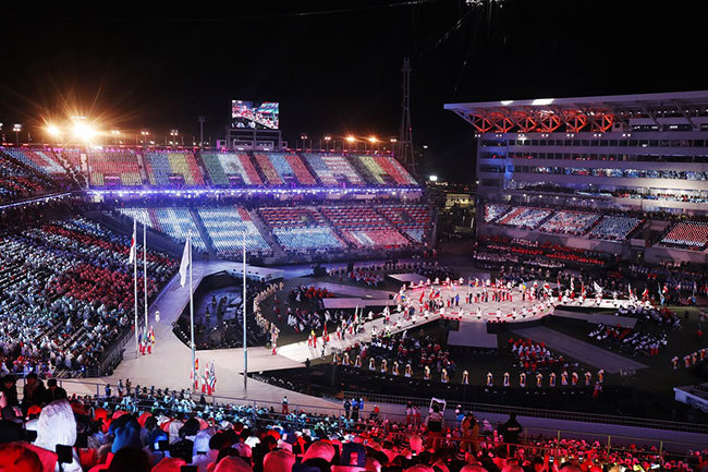 平昌オリンピックスタジアムでは閉会式が行われ、パラリンピック旗が次回冬季大会開催都市の北京に引き継がれた。