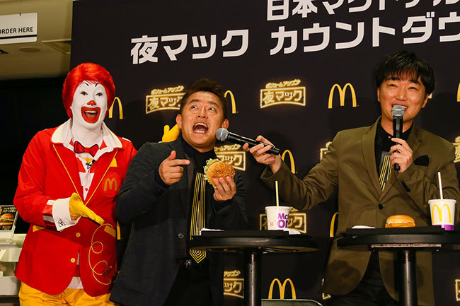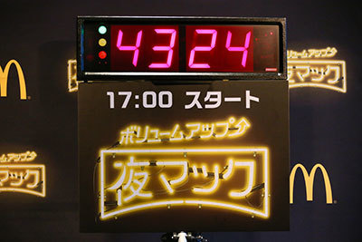 同日、東京・港区のマクドナルド六本木ヒルズ店ではカウントダウンイベントが開催され、下平篤雄副社長は「当社はこれまで、ディナーに特化したメニュー開発に取り組めなかったが、お客さまのニーズが見えてきた。現在のバーガーを超えるしっかりした食べ応えのあるメニューで満足していただけるよう『夜マック』を全国の店舗で開始する。ボリュームある夕食で、夜のマクドナルドを楽しんでほしい」とあいさつした。