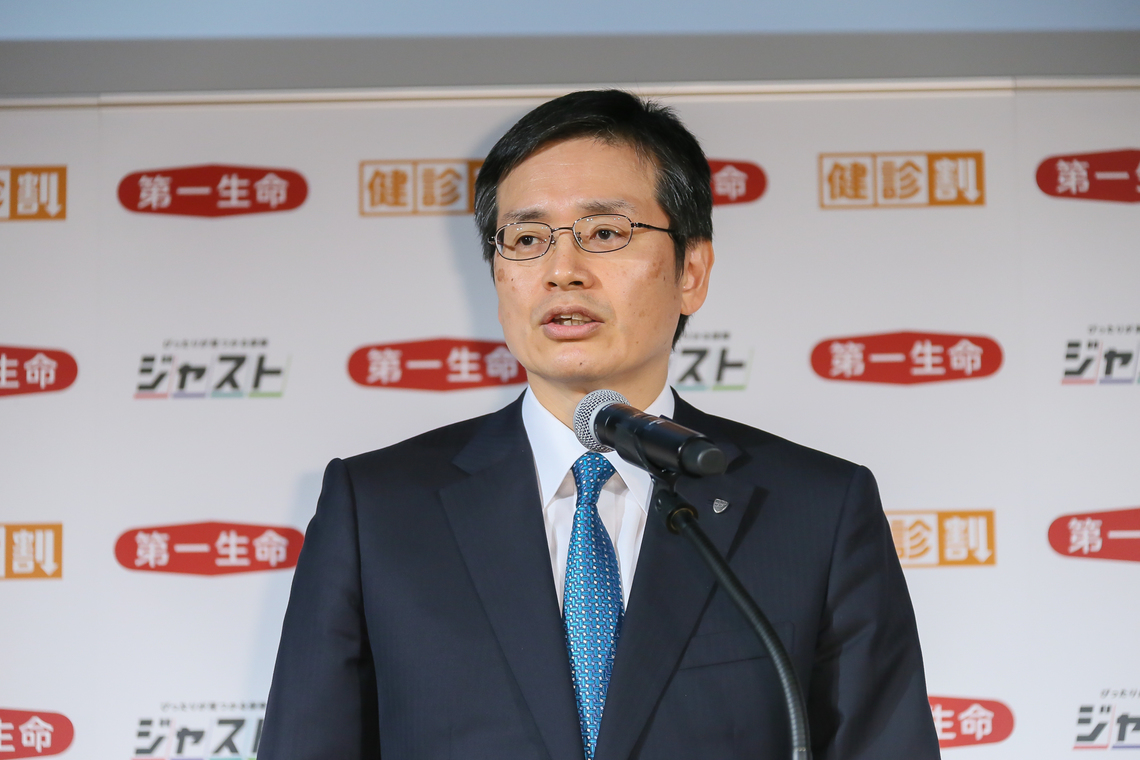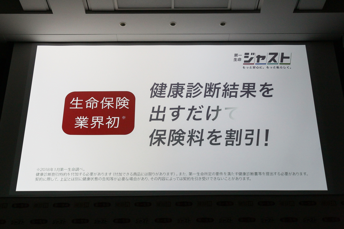 第一生命保険は3月20日、業界初となる「健診割」を取り入れた新商品「ジャスト」の新CM発表会を、東京の日比谷本社で行った。