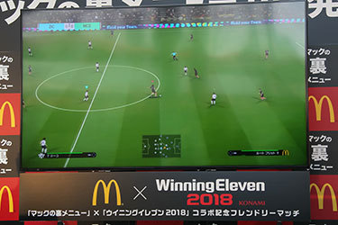 マーケティング本部の坂下真実部長は「好評につき3年目を迎えることができた。今年もいい意味で期待を裏切っていきたい」とキャンペーンへの意気込みを述べ、アクションサッカーモバイルゲーム「ウイニングイレブン2018」とのコラボで、裏マッククーポンなどが当たる同時キャンペーンを紹介した。