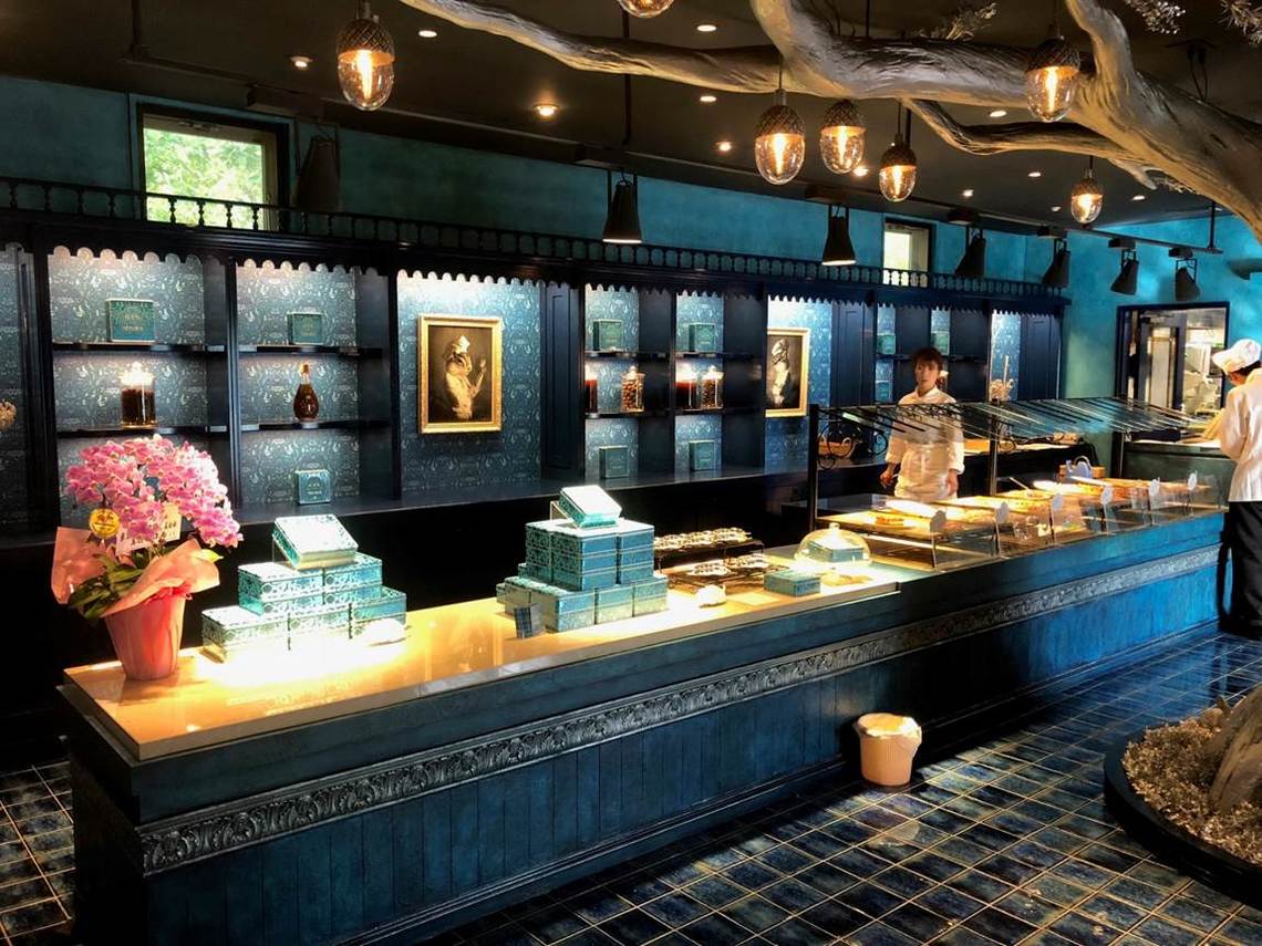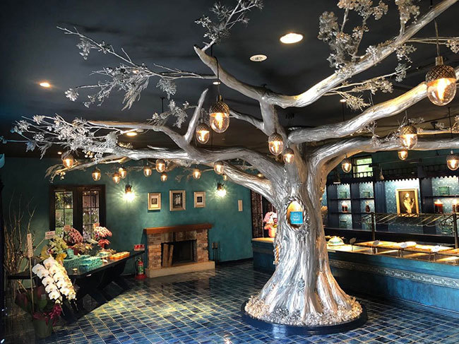 お店の中央には大きな「銀のどんぐりの木」を配し、特製のどんぐりライトがやわらかな光を放ちます。自分が美味しいと思うものしかつくらない森の料理長「チェス」と、五感と経験を頼りに森の食材をさがしだす副料理長「ナッツ」。架空のパティシエふたりの菓子工房をイメージしました。