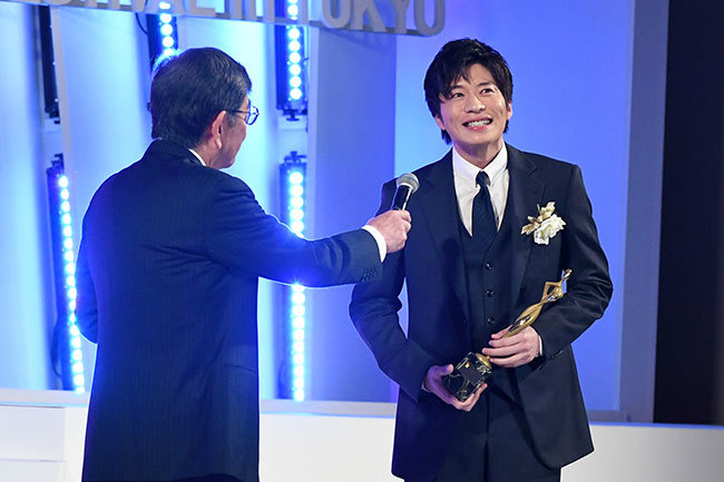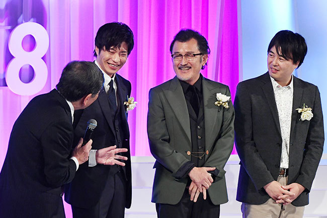 主演男優賞を受賞したテレビ朝日「おっさんずラブ」の田中圭さんは「共演者の体当たりの感情を、とにかく全て受け止めることを心掛けた」と振り返った。司会の石坂浩二さんは「テーマとして難しいはずなのに、主人公の感情を細やかに演じ、感情を笑いで包んで伝えられていた」とコメントした。