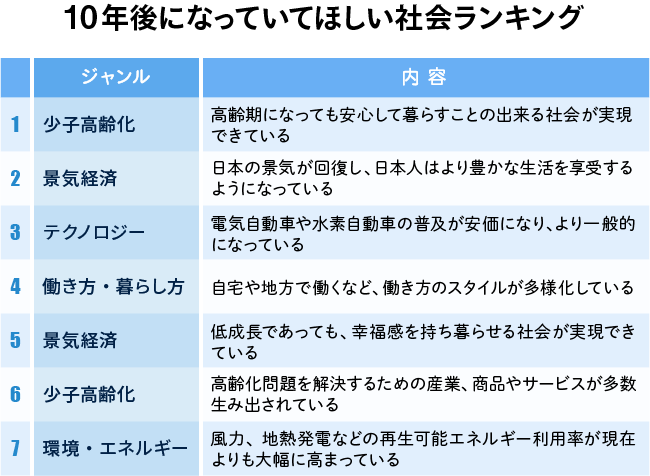 表1 10年後になっていてほしい社会ランキング