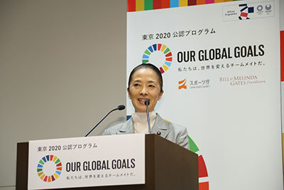 有森さんは「スポーツを通して、さまざまな可能性があること、その可能性を自分の国だけでなく、さまざまな国の人のために生かすべきだということを教えられた。社会に応援されてきたアスリートが感謝の思いを持って活動できるSDGsの流れが、このパートナーシップによってできることをうれしく思う。これを機に、多くのアスリートが賛同し行動を起こすことを願っている」と期待を語った。