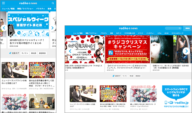 インターネットでラジオの配信サービスを展開するradiko(ラジコ)は12月18日、ラジコに参加する民放ラジオ局と、ラジコが発信するニュースや番組情報を紹介する記事ポータルサイト「radiko news(ラジコニュース)」(https://news.radiko.jp) を開設した。