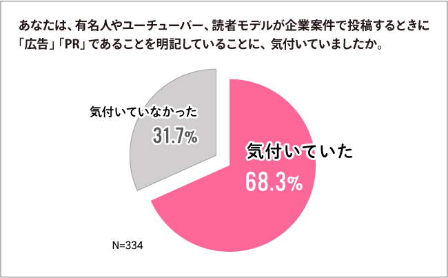 インフルエンサーを活用した企業の宣伝PR活動は、消費者も広告だと気付いています。マイナビティーンズ(電通ギャルラボとマイナビティーンズは共同研究チーム「原宿可愛研」として活動)が2018年9月に13~19歳女性に調査(概要は末尾に)した結果、約7割の女性がインフルエンサーの広告やPR投稿に気付いていると回答しています。