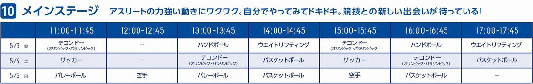 ニュース公開日: 2019/05/010GWは「東京2020 Let’s 55」で 東京大会の競技体験を#メディア/コンテンツ#東京オリンピック・パラリンピック#スポーツ体験前の記事次の記事 東京2020組織委と東京オリンピック・パラリンピック大会のゴールドパートナー・三井不動産は5月3~5日、東京・江東区の三井ショッピングパーク ららぽーと豊洲で、競技体験プロジェクト第5弾「東京2020 Let’s 55 〜レッツゴーゴー〜with 三井不動産」を開催する。 同プロジェクトは、2020年までに東京大会の全55競技を体験できる場を一般に提供するもので、過去4回の開催で34競技を実施してきた。 今回は初開催となるハンドボール、ウエイトリフティングを含む、オリンピック10競技と、パラリンピック4競技の体験などのブース・ステージを展開。大会マスコットのミライトワ、ソメイティも登場する。 また「子どもの日ヤングアスリートスペシャル!」をテーマに、子どもたちに身近な年代のアスリートが多数参加する予定。 5日には、オリンピアンの大神雄子さん(バスケットボール)や、大山加奈さん(バレーボール)と共に、赤荻颯太選手(自転車競技)、高野万優選手(空手)、橋本勝也選手(ウィルチェアーラグビー)らヤングアスリートが参加するセレモニーも開催する。 特設サイト: https://tokyo2020.org/jp/special/lets55/ ■ 第1弾の様子