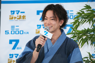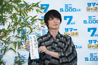 神木さんは「帯はワンポイントです」と、宝くじの当せんをイメージさせる、矢で的を射た柄の帯を披露。佐藤さんの浴衣姿については「もう、カッコよすぎてどうするんですか!夏限定の佐藤健が見れるのが楽しみ」と満面の笑みで絶賛した。