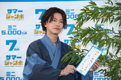 佐藤さんが、7億円でかなえたい自分の夢について「神木においしい物を食べさせたい。肉やすしですね。7億円あれば10年くらい続けられる」と話すと、神木さんは「いろいろ考えたけど、佐藤健にたどり着きました。彼が幸せになりますように」と、ここでも仲の良さを見せつけ、それぞれの夢を書いた短冊を笹に飾り付けた。
