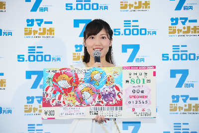 宝くじ「幸運の女神」の早川愛さんは、「サマージャンボ宝くじは1等賞金が5億円、前後賞が1億円で、1等・前後賞合わせて7億円になる高額賞金が魅力。サマージャンボミニは1等・前後賞を合わせた賞金額は5000万円で、1等3000万円が40本、1等前後賞1000万円が80本と、高額当せんのチャンスが多い」と紹介。