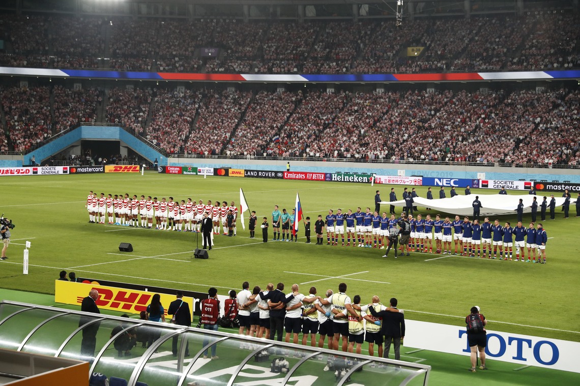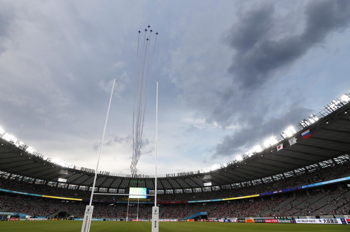 スクリーンの中からは、2011、15年大会を連覇したニュージーランドのキャプテンだったリッチー・マコウ氏が優勝杯(ウェブ・エリス・カップ)を掲げてサプライズで登場し、開会式はクライマックスを迎えた。
