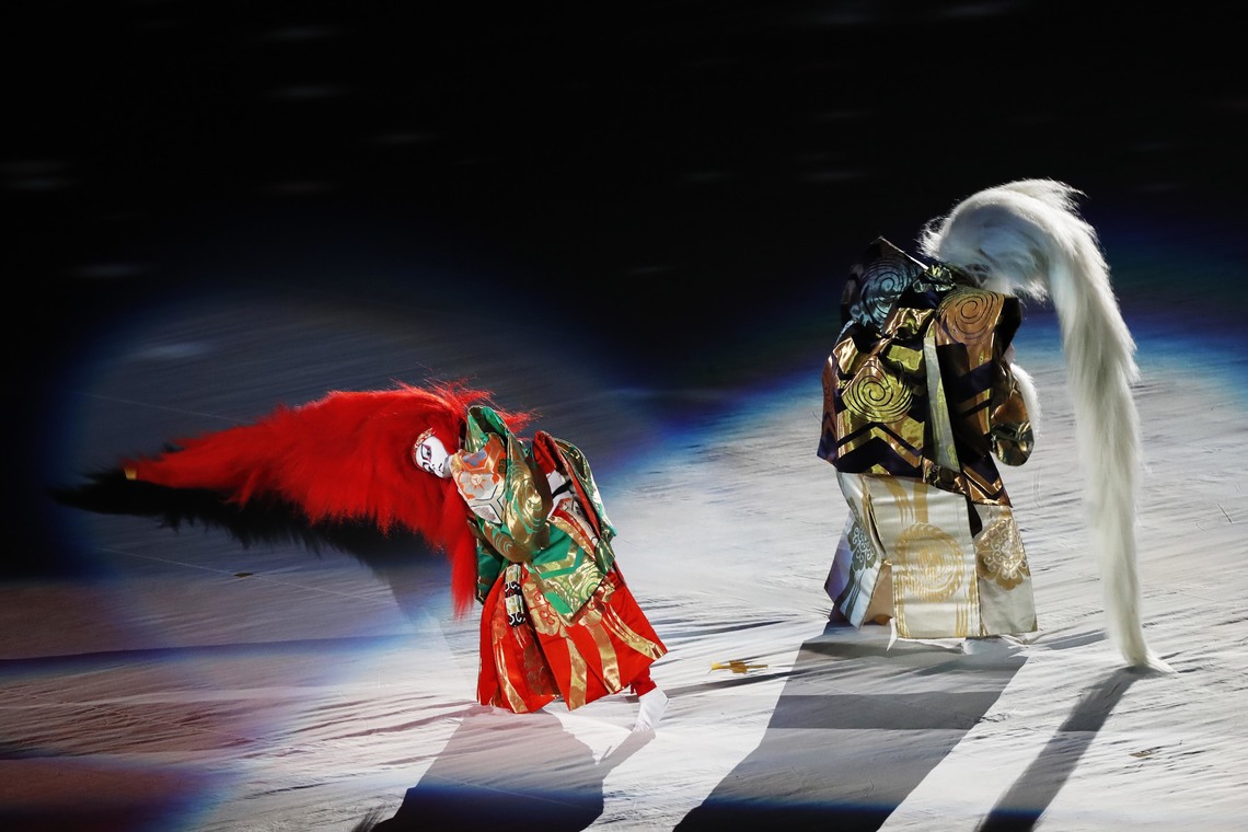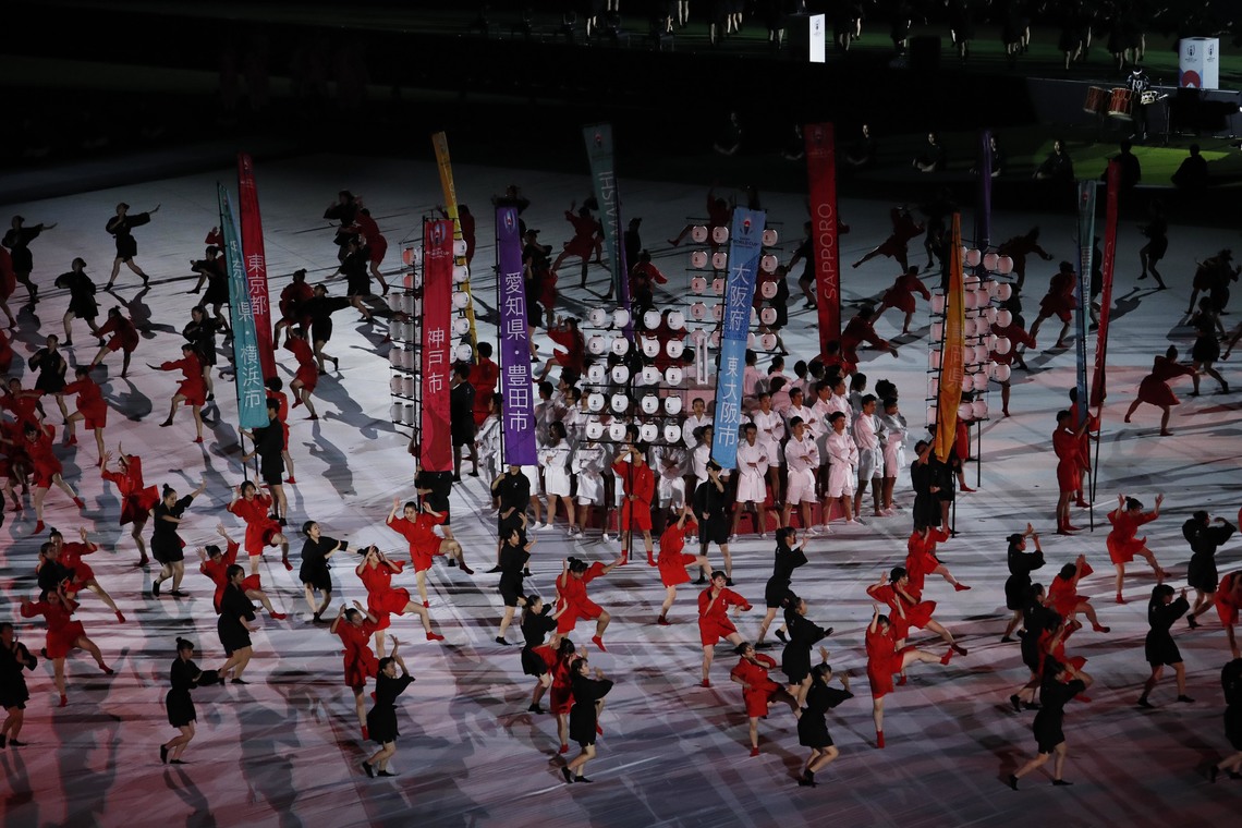 式典は、厳粛な雰囲気の中で、海や山などの神を表現した舞踏で始まった。その後も和太鼓が鳴り響く中、200人以上が参加した日本の祭りをイメージした踊りや、開催都市の紹介が行われた。