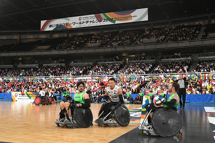 ラグビーW杯で日本がベスト8進出を決め、日本中が沸き立つ中、「車いすラグビーワールドチャレンジ2019」(主催=日本障がい者スポーツ協会、日本車いすラグビー連盟 協賛=三菱商事、日本航空、三井不動産、日興アセットマネジメント、商船三井、ゴールドウイン、清水建設)が10月16日、渋谷区の東京体育館で開幕した(20日まで)。