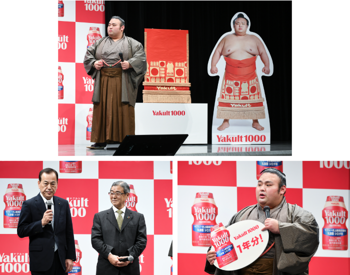 大関はヤクルトを試飲して「「場所中はストレスにさらされるので、それを和らげ質の高い睡眠が取れるのは大切なこと。飲みなれた安定の味わいでおいしい」と話した。