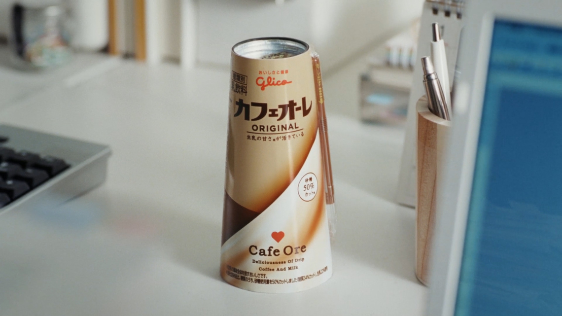 オフィスで仕事中の武井さんの視界には、後で飲もうと思っている「カフェオーレ」が。仕事に集中しようとするが、「頑張っていると、脳みそが求めるの」と今すぐに飲みたくて仕方ない様子。さらに、コーヒーと生乳が混ざり合う光景が浮かび、頭の中はカフェオーレでいっぱいになる。次の瞬間、カフェオーレをつかんで勢いよく飲み始め、そのおいしさに酔いしれる武井さんがアップになる。