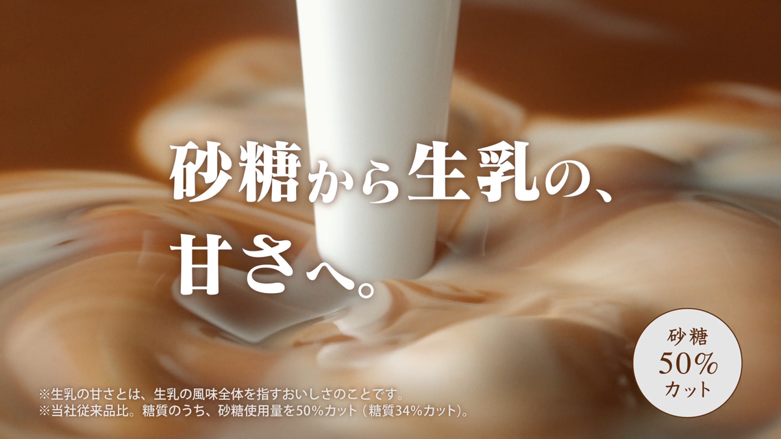 武井さんはインタビューで、「カフェオーレは小さい頃から家族で飲んでいたので、CMに出演できてうれしい。“もっと脳で感じてください”など、難しい芝居もあったが、楽しく撮影できた」と話し、新商品については「最近の健康志向など、時代に合わせて変化したのは、長年にわたり多くの人に愛されているからこそだと感じる。ぜひ皆さんにも飲んでほしい」とコメントした。