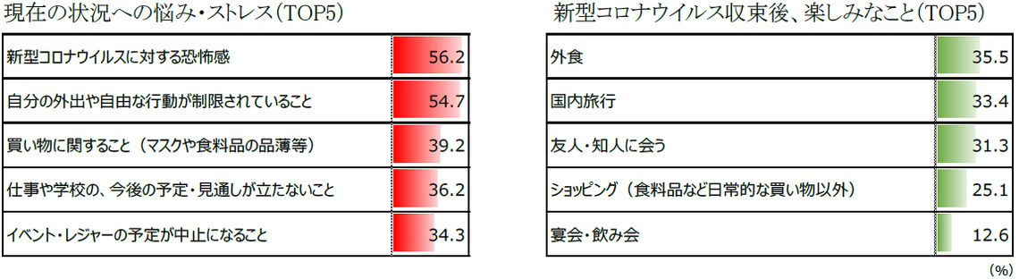 The company states: "Currently, we can say we are facing a situation where our freedom of action is restricted for the first time since the post-war period. 'Fear of the novel coronavirus' reaches nearly 60%, and 'restrictions on action' and 'uncertainty about plans and outlook' are also cited as major sources of worry and stress.