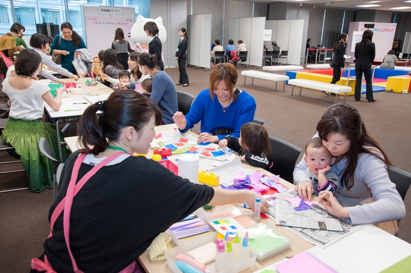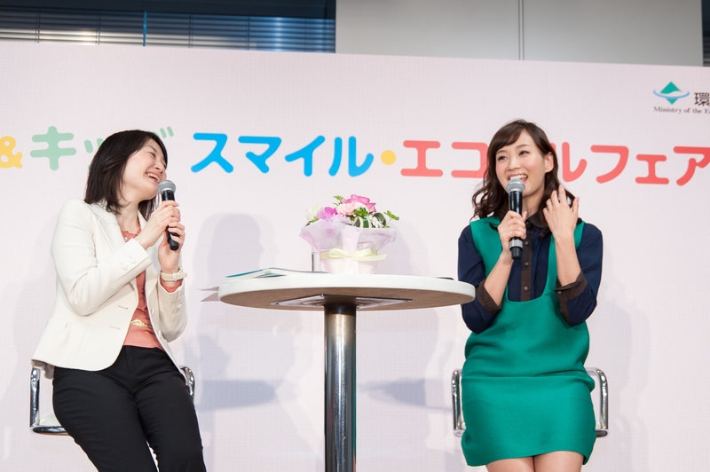 シンポジウムと併催で「ママ&キッズ スマイル・エコチルフェア」も開かれ、ステージプログラムや親子で工作が楽しめるコーナーが設けられた。スペシャルステージでは、ミキティの愛称で幅広い世代に人気のタレント、藤本美貴さんが登場。「育児の手伝いができなくても、“大変だよね、ありがとう”の一言がうれしい。その言葉で体の変化や不安を受け入れられる」などと体験を披露。多くの母親たちの共感を呼んだ。