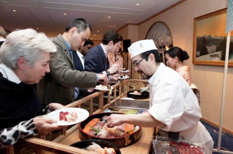 「ジャパン・ナイト」は23日にダボスのセントラル・スポーツホテルで開かれ、WEFの参加者ら約650人が出席した。冒頭、LIXIL の藤森義明社長、ローソンの新浪剛史社長のあいさつに続き、WEFのクラウス・シュワブ会長や主催の日本企業17社の代表らが鏡開きを行った。会場にはすしや和牛をはじめとした和食、日本酒などが用意され、来場者は思い思いに日本の食文化を堪能した。また場内に設置されたモニターでは、ダボス会議での安倍晋三首相の演説や新国立競技場のプロモーション映像、富士山の紹介映像などが流された。