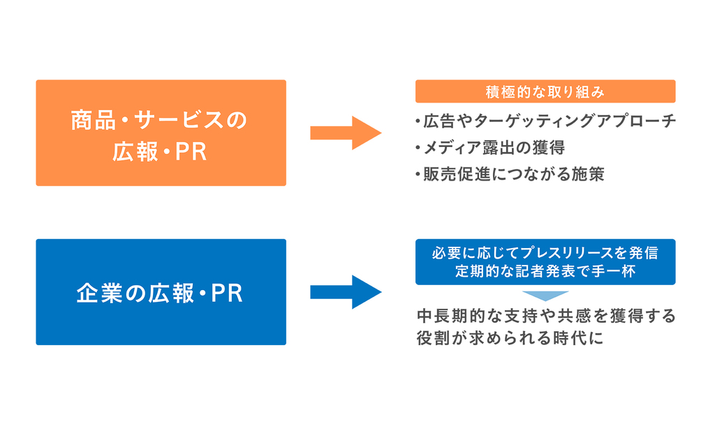 そうした中、目を向けてみたいのが、「企業広報」です。ここでの「企業広報」とは、企業が取り組む社会活動や企業メッセージの発信を指します。 商品・サービスの内容やクオリティはもちろん重要ですが、加えて「それを提供している企業はどういう企業なのか」ということが、差別化のポイントとなり、ひいては企業価値そのものを大きく左右する要因となることも。