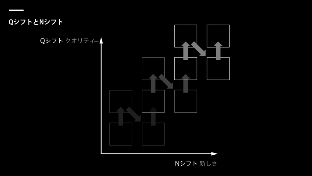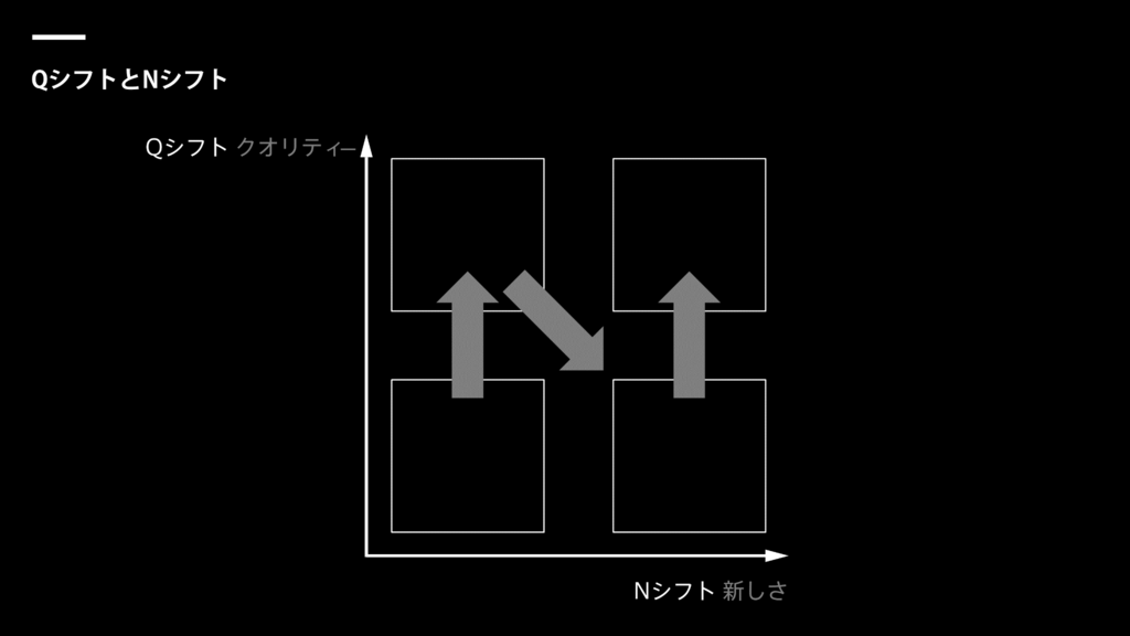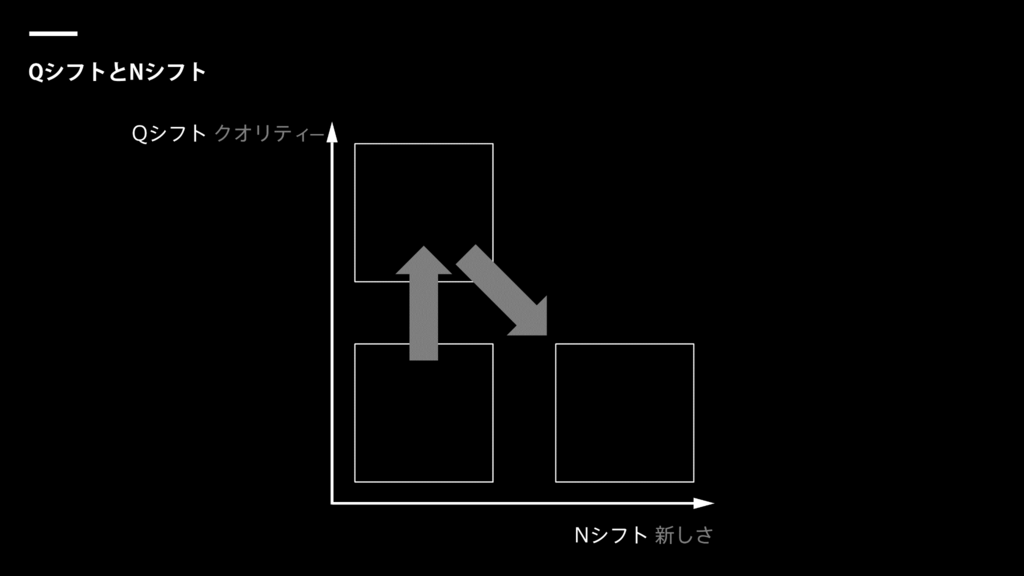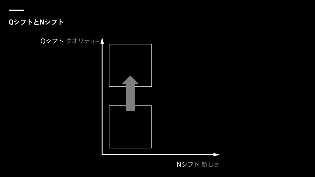 QシフトとNシフトという考え方があります。下の図の縦のラインがQシフト=「品質」を表しています。横のラインがNシフト=「新しさ」です。