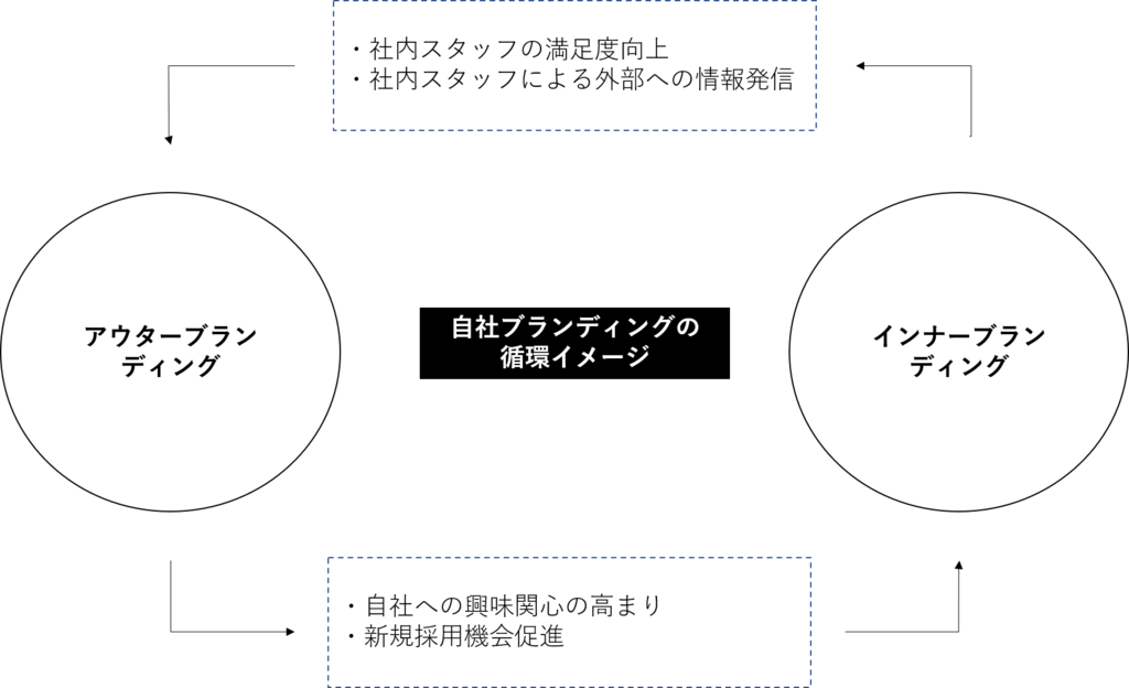 インナーブランディングに取り組むことで社内スタッフの満足度が上昇し、社外への情報発信の内容が好意的なものへと変化していく。そうして生み出されたアウターブランディングによって、社外から自社への興味関心が高まり、新規採用機会も促進されることで、新たなインナーブランディングの機会が創出される。そうした循環こそが、現代における自社ブランディングの真の姿なのではないでしょうか。