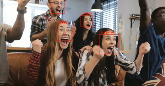 ①表情・感情認識モジュール:顔の表情解析などによって、その人の感情を分析