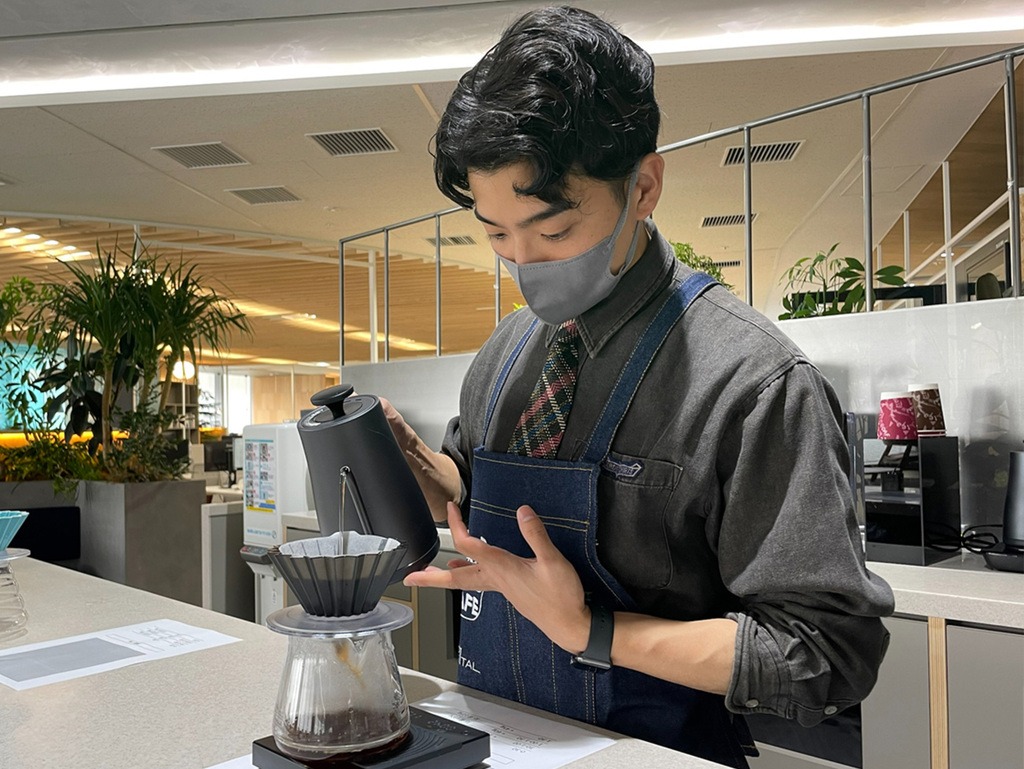 社内イベントでバリスタを務める永田氏 田中: 効率や定量的なKPIを重視しているデジタル専業会社などにおいて、ネットワーキングできる新しいカルチャーや、デジタルデトックス時間を作ろうなど、社内イベントに積極的という流れが大きくなってきている印象があります。効率良く分業するだけではなく、人とつながる感覚を持てるチームの方が心理的安全性が高く、仕事のパフォーマンスも高いという研究もありますね。