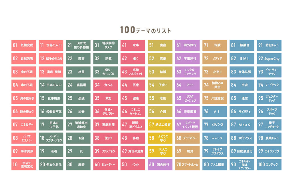 Q. 「電通 未来ファインダー100」は、8カテゴリー・100テーマ別により良い未来のヒントをまとめています。現在の形になった経緯について教えてください。