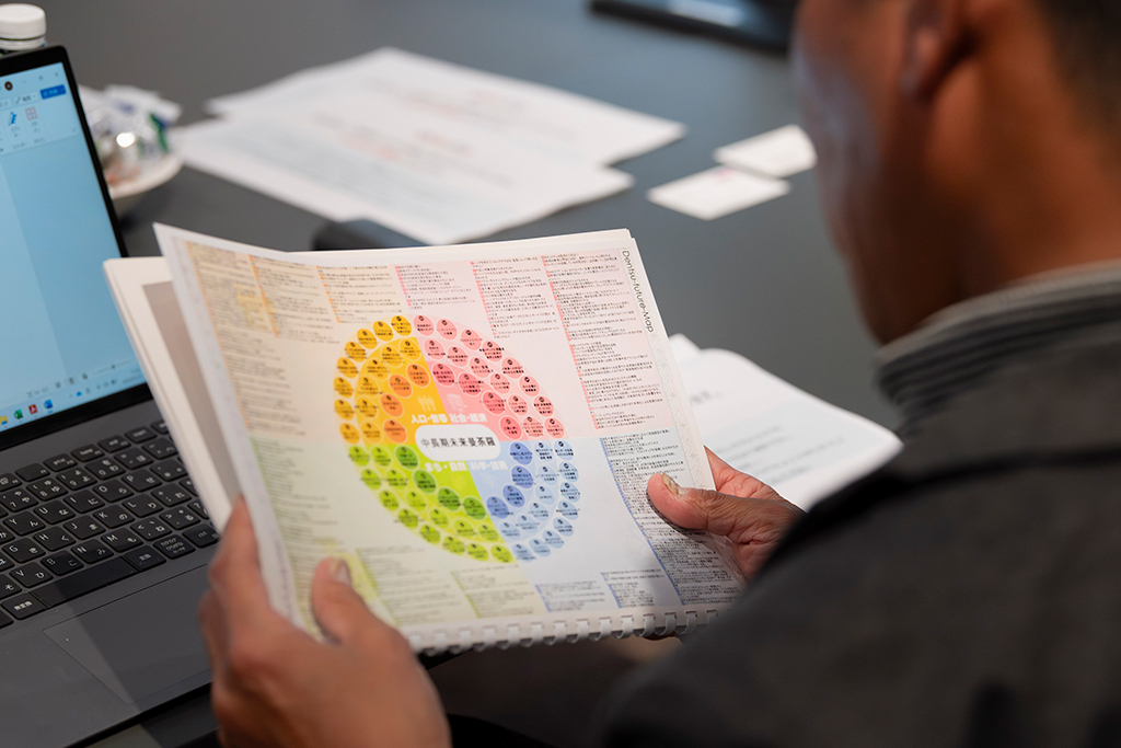 グループワークでは、各チームに「未来曼荼羅2024」から抜粋した5つのトレンドテーマが配られ、その中から気になる要素やキーワードを3つピックアップ。「ロボットの代替」、「健康が個人の満足度向上」、「サステナビリティから、リジェネレーションへ」など、思い思いのワードを選び、その理由を語り合いました。