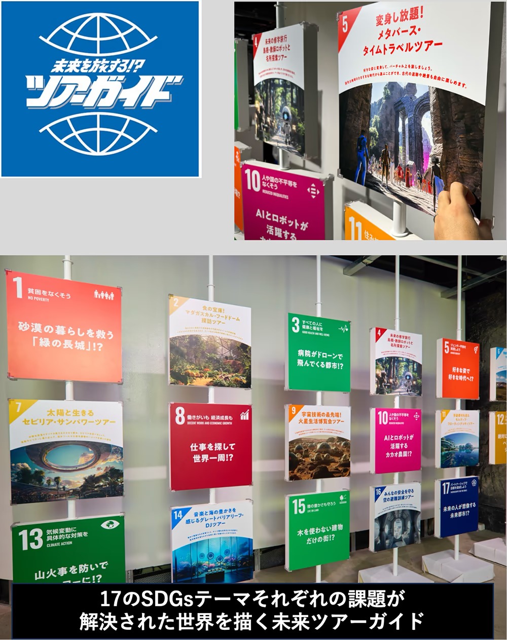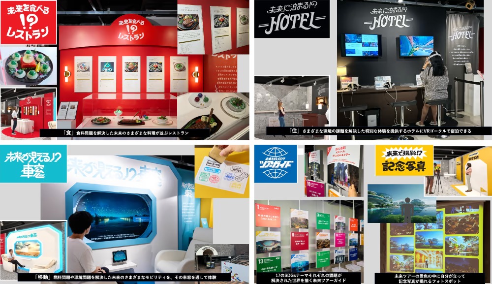 「未来はこんなふうに良くなるかもしれないし、もしくはちゃんと取り組まないとこんなふうになってしまうかもしれない」とメッセージを投げかけつつ、楽しみながらSDGsを学べるように「未来旅行」というテーマでアプローチしました。
